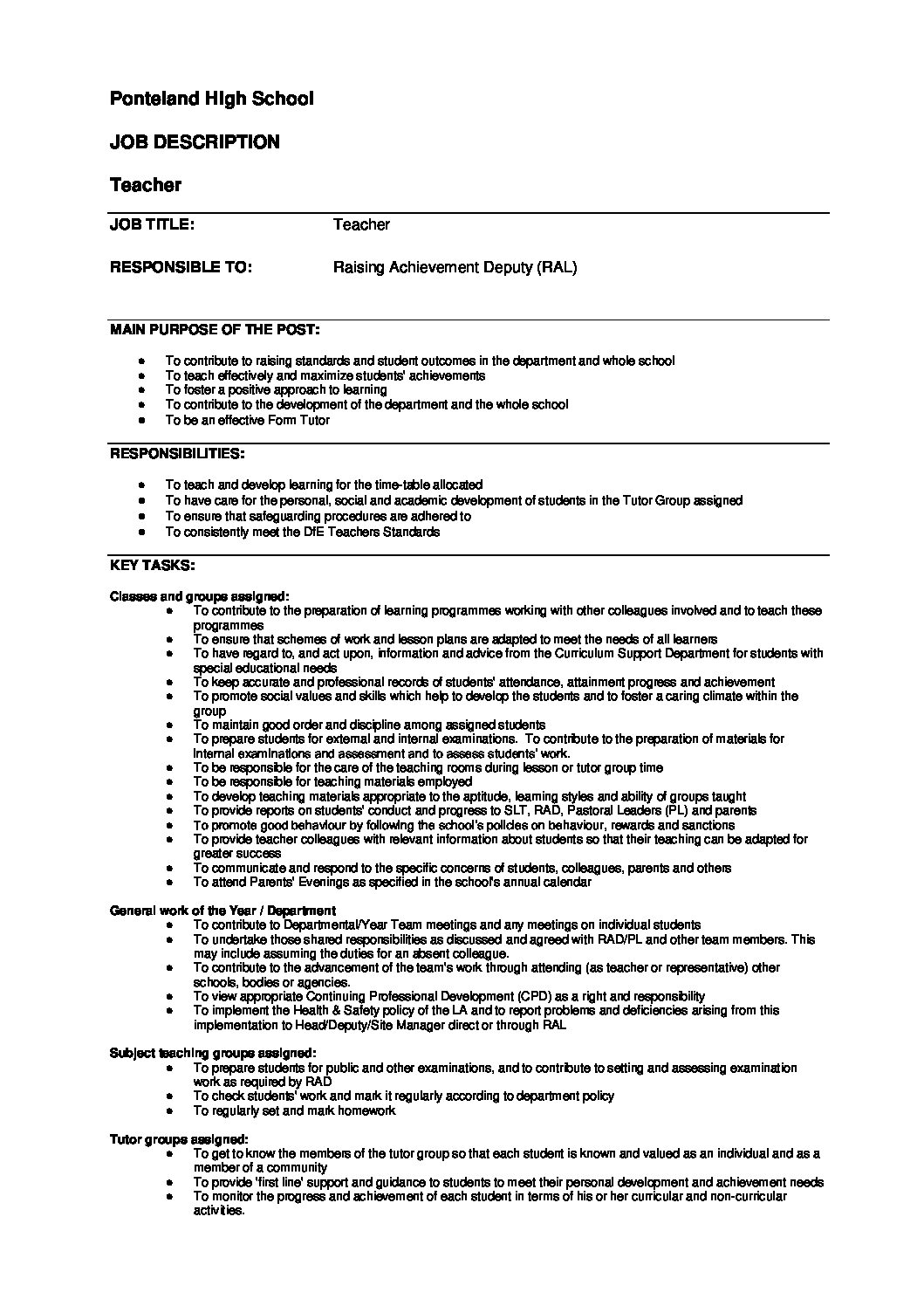 _Classroom Teacher Job Description – 2025